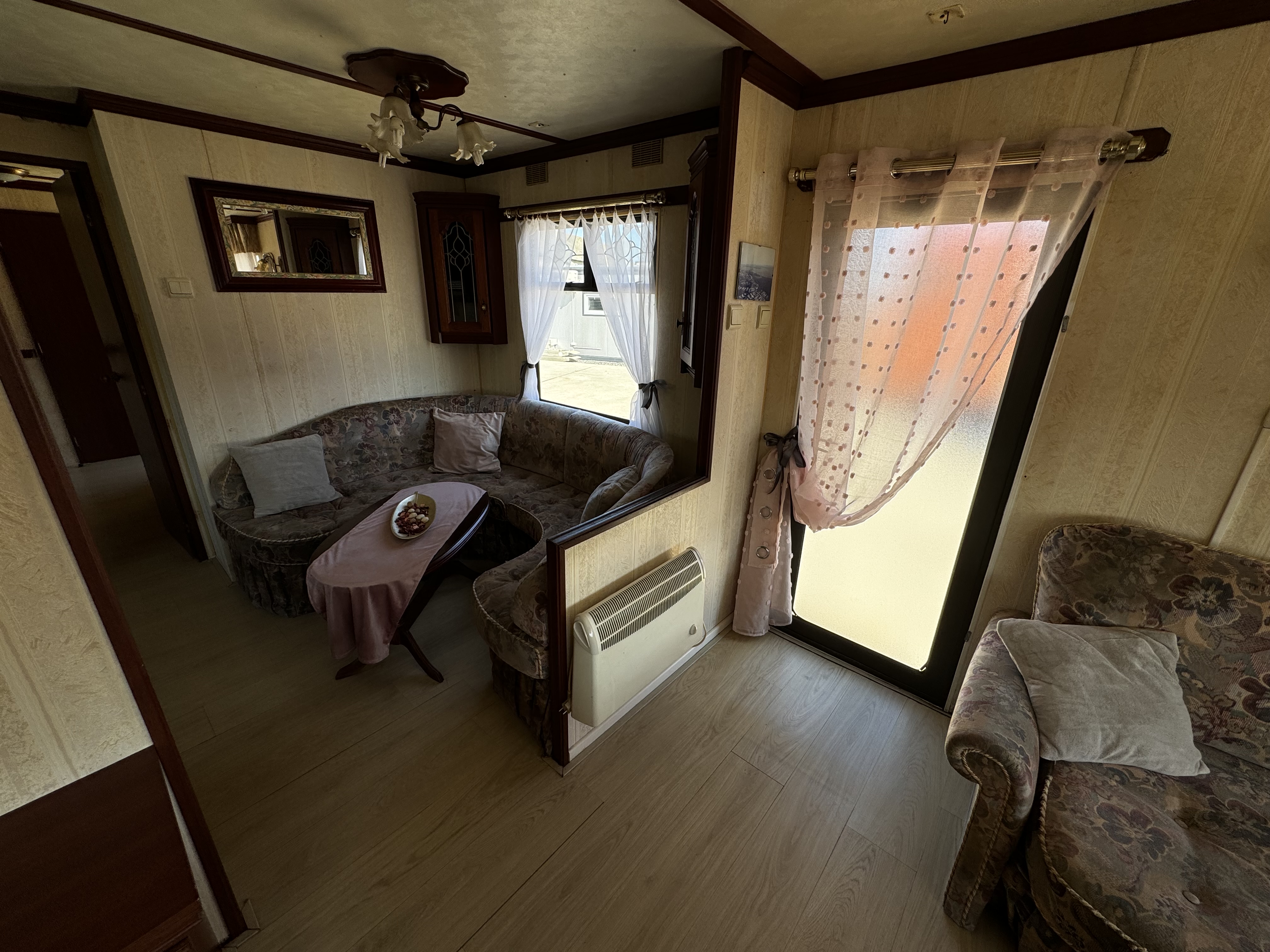 -SALON : Duża rogówka , ława , meble , kominek gazowy