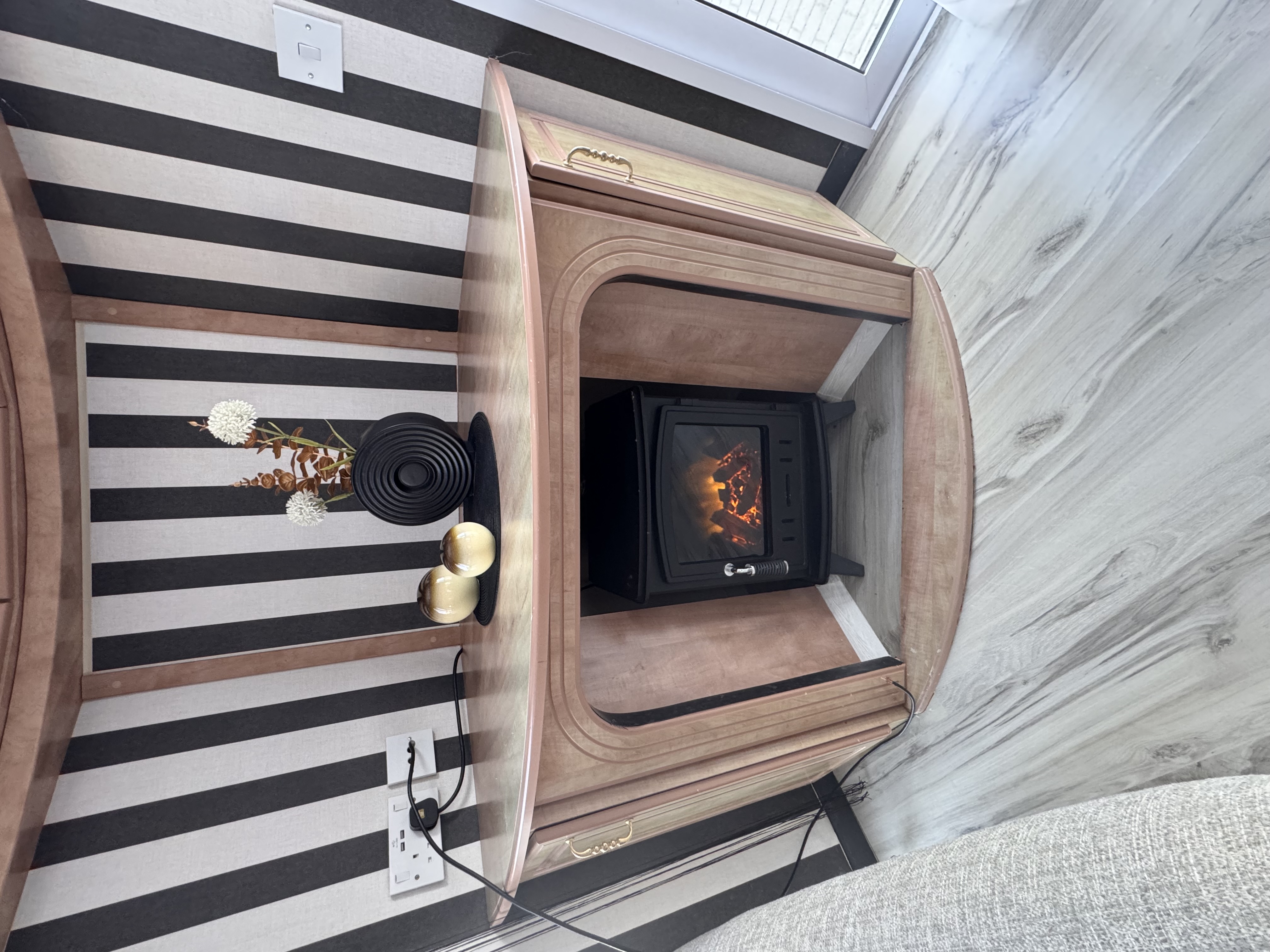 -SALON : kanapa rozkładana do spania dla dwóch osób ,fotel , stolik , szafki , meble , kominek elektryczny
