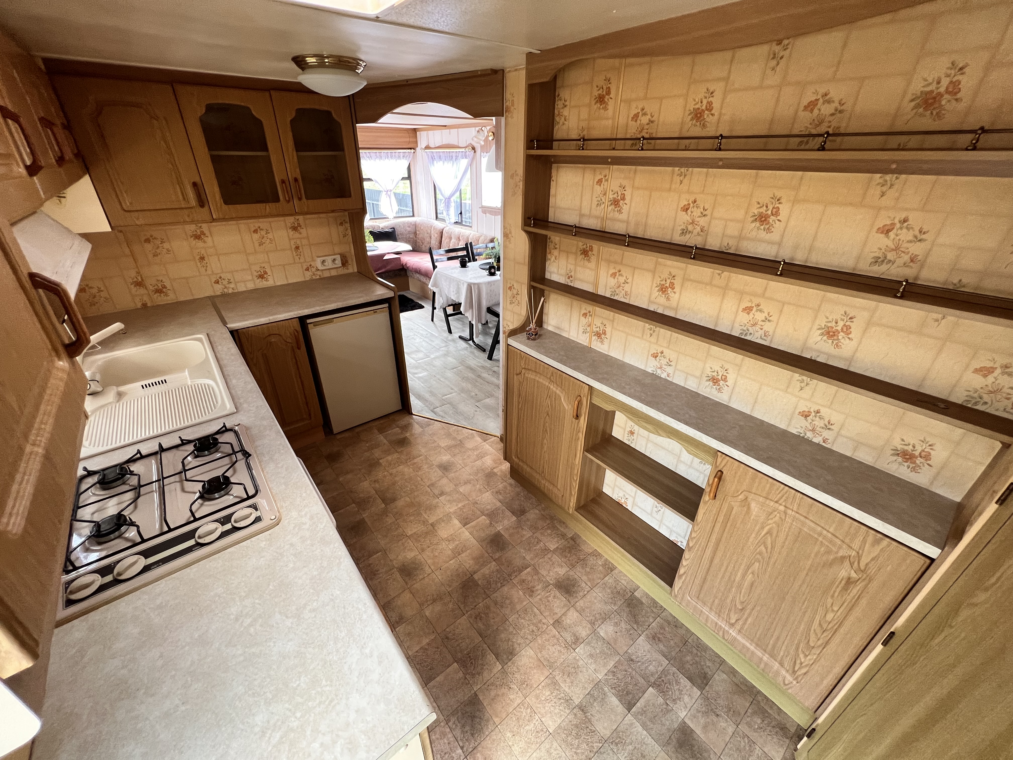 -KUCHNIA : meble , lodówka , piekarnik , piec do pizzy , kuchnia gazowa 4 palnikowa , zlew , piec gazowy na ciepłą wodę