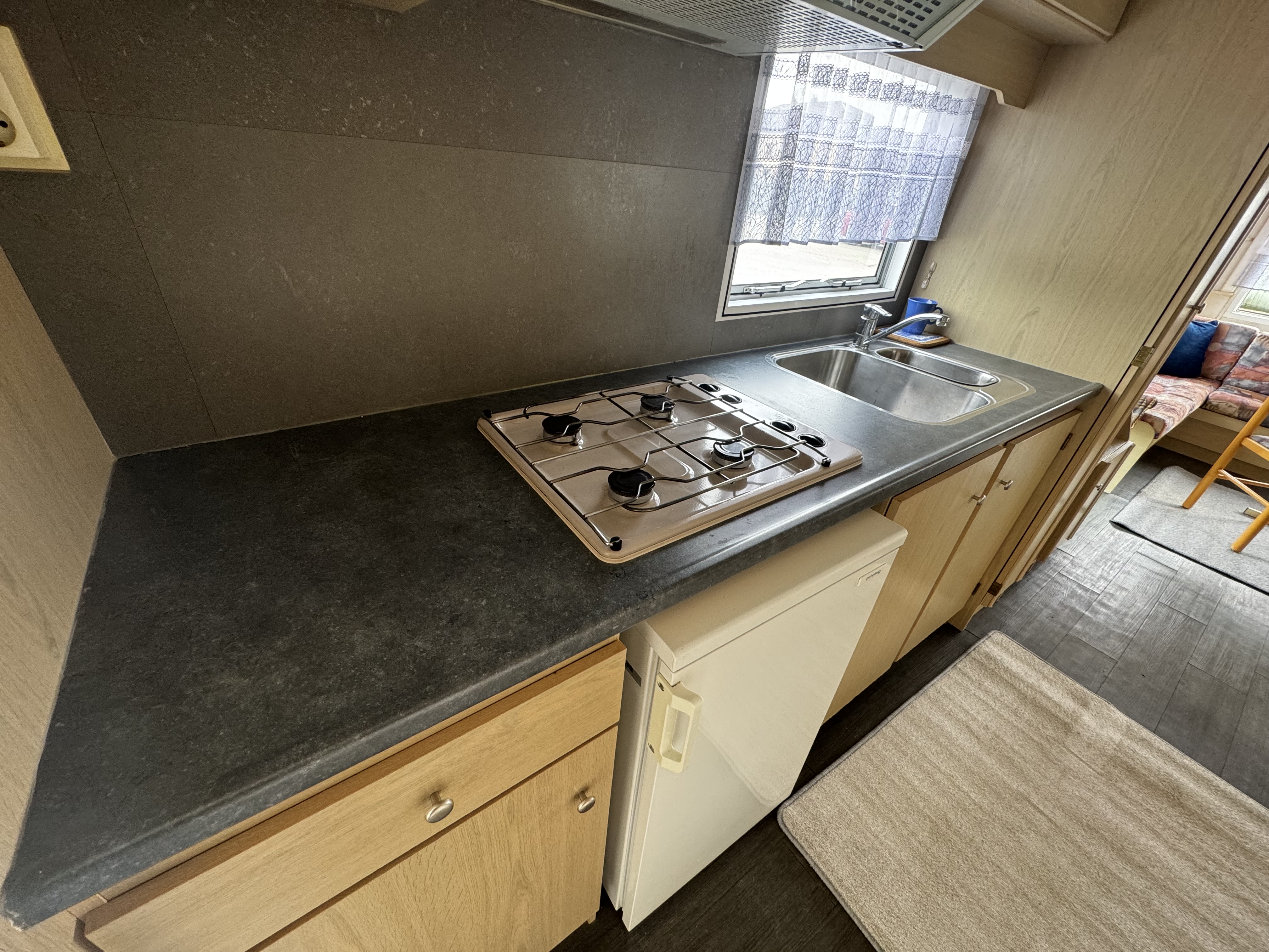 -KUCHNIA : meble , zlewozmywak , lodówka , pochłaniacz elektryczny , płyta gazowa 4 palnikowa