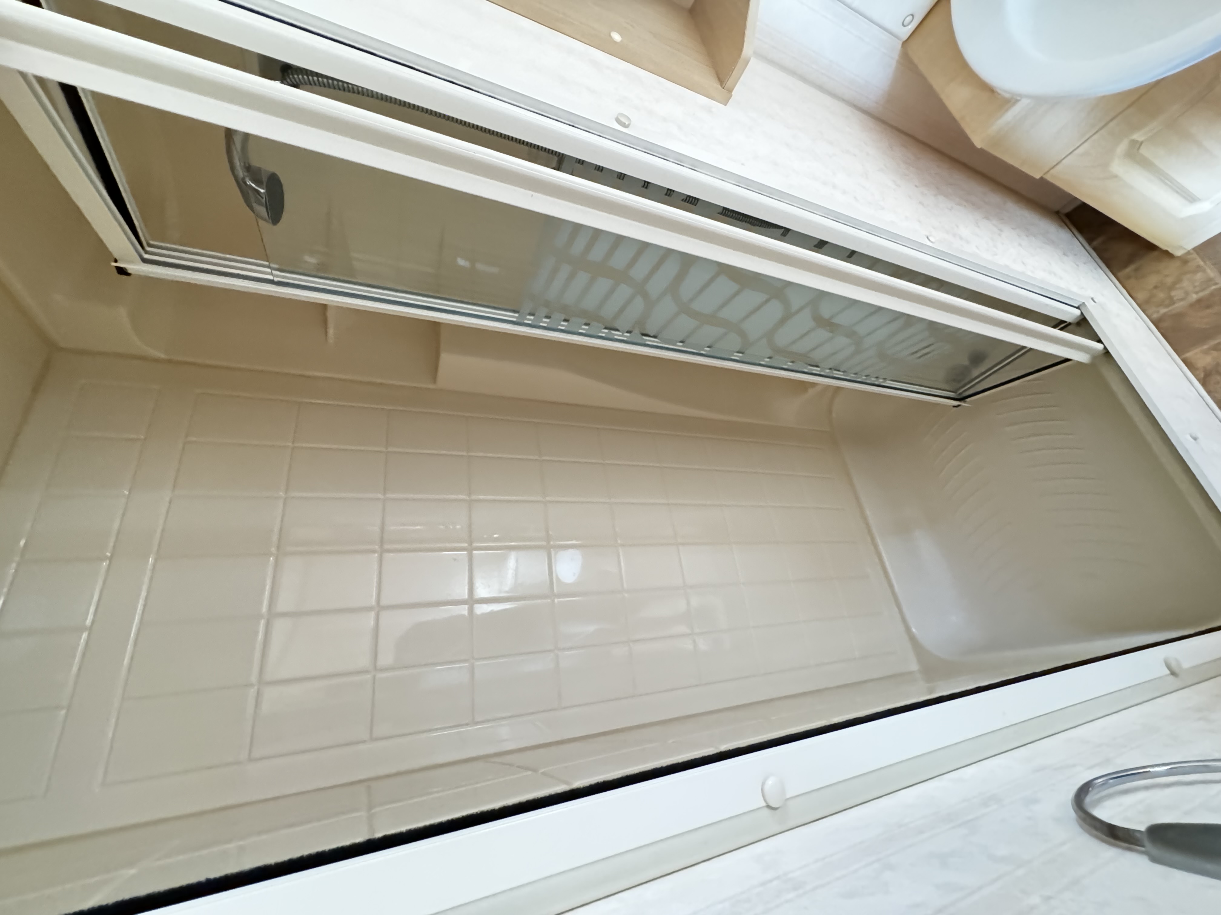 -ŁAZIENKA : toaleta , umywalka , lustro , meble , kabina prysznicowa , elektryczny wentylator , grzejnik elektryczny